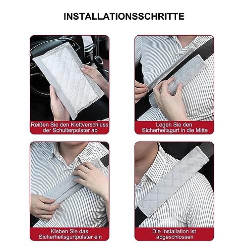【Tessuto di Alta Qualità】: Copricintura auto realizzata in fibra di poliestere, che è più sicura durante i viaggi. La protezione per cintura di sicurezza previene lesioni da frenata improvvisa, ideale per proteggere collo, spalle, clavicole e petto da lesioni alla cintura di sicurezza, adatto a tutte le età.