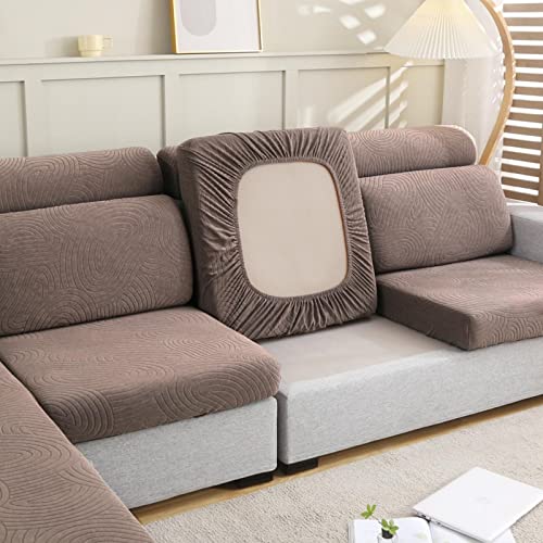 Copricuscini per Divani Elasticizzato Coprisedile per Divano Separati Fodera per Cuscino del Sedile del Divano 1 2 3 4 Posti Copri Seduta per Divano da Soggiorno, Brown-Chaiselongue(145-180cm)
