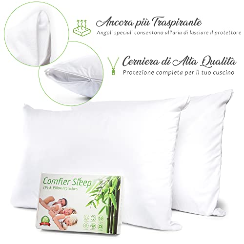 100% IMPERMEABILE - protezione totale contro sudore, saliva, liquidi e macchie, perfetto per cuscini in piuma d'anatra e altri cuscini costosi.Garantisce il massimo comfort durante il sonno e preserva il tuo cuscino.