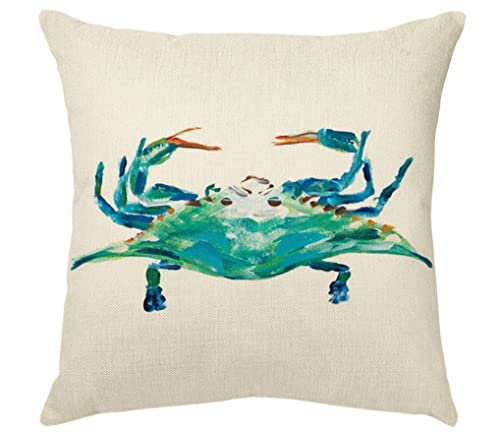Copricuscino con ippocampo colorato pesce granchio, in cotone e lino, decorativo, per divano, auto, camera da letto, 45 x 45 cm, set da 4