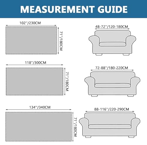 【ISTRUTTURA DI DIMENSIONE】I nostri copridivano di grandi dimensioni sono disponibili in varie misure.Adatto per divano a 2-4 posti. Fornisce la copertura perfetta per il vostro divano, è possibile scegliere la dimensione più adatta per il vostro divano. Caldo suggerimento: si prega di misurare le dimensioni del vostro divano prima di effettuare un ordine