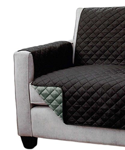 Copridivano doppio, per poltrona e divano, trapuntato con braccioli e tre tasche - Colori: antracite / grigio chiaro, marrone / beige, nero / antracite, Microfibra, nero/antracite, 2-Sitzer Sofa