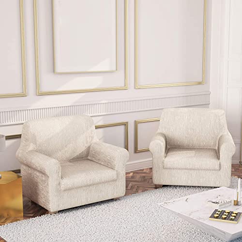COPRIDIVANO FODERA PROTEGGI DIVANO CON BRACCIOLI ELASTICIZZATO JACQUARD UNIVERSALE 2 POSTI (ESTENSIBILE DA 115 CM A 170 CM) PANNA