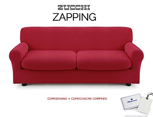 Copridivano da 2 POSTI con 2 copricuscini Art. ZAPPING Cannete di Zucchi da 120 Fino 180 VAR. Rosso + Tavoletta Profumo Biancheria per armadi by Biancocasa