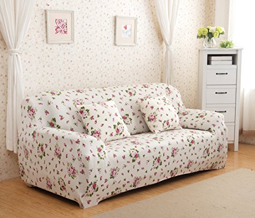 Copridivano a 4 posti elastico, protezione per animali, in tessuto morbido di poliestere con stampa floreale, White Rose, 4 Seater:235-300CM