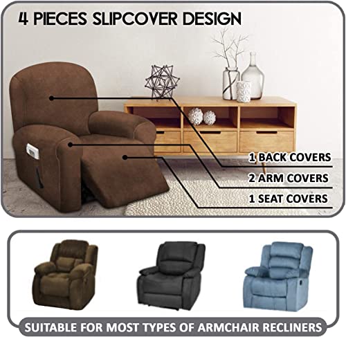 Copridivano Reclinabile a 1 Posti, 4 Pezzi in Microfibra Elasticizzato Componibile Divano Fodera Morbida in Pile 1 Posti, Lavabile con Elastico per Bambini, Animali Domestici (Marrone, 1 Posti)