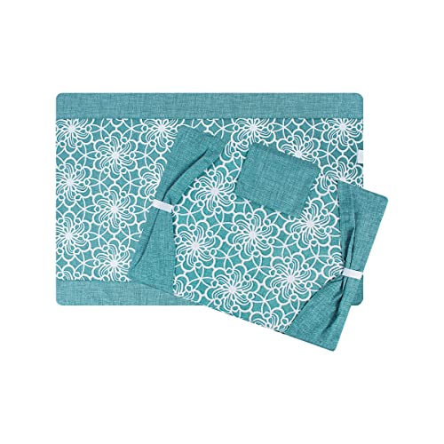 Set Coprifuochi + Copriforno Imbottito a Fantasia Floreale Fiori Vari Colori (Turchese)