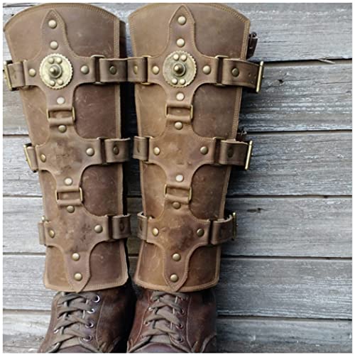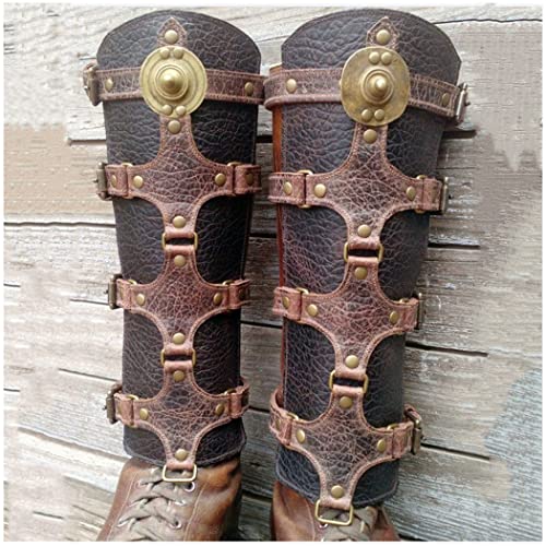 NA Coprigambe in Pelle PU Vintage Armatura Medievale Regolabile Protezione per Gambe Vintage Fibbia per Scarpe Rinascimentale Cavaliere Vichingo Copri Stivale per Halloween Accessorio,5
