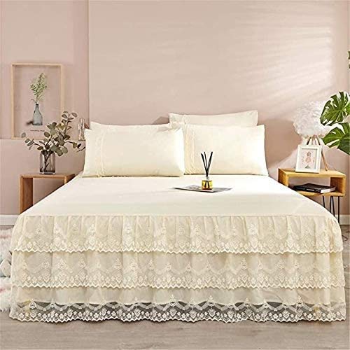 Copriletto Gonna Letto Gonna Letto Volant Copriletto 120/150/180/200cm Matrimoniale/Singolo, Polvere Increspatura Copertura Camera da Letto Tessili per La Casa Gonna con 2 Federe Set Letto Copriletto