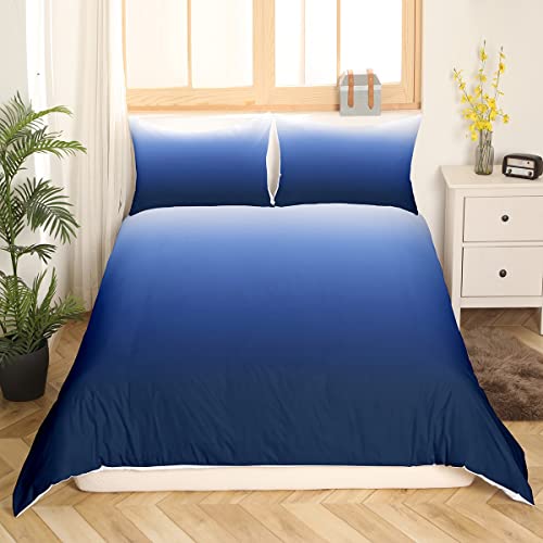Copriletto blu ombre, copripiumino per letto singolo, set di biancheria da letto sfumato blu bianco, copripiumino per acquerello, copriletto moderno con decorazione per camera con chiusura a cerniera