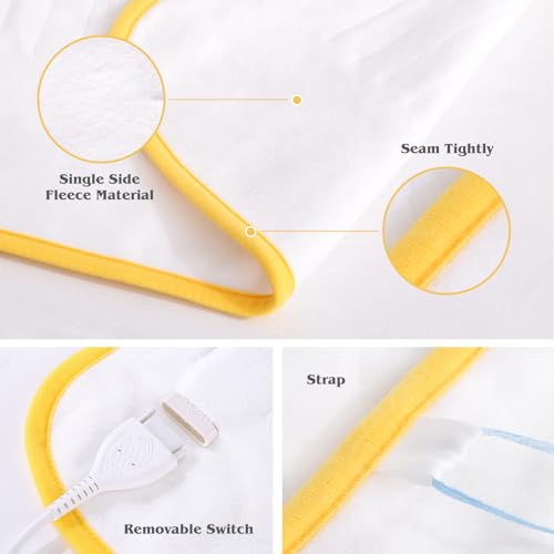 Coprimaterasso riscaldato elettrico, Coprimaterasso riscaldato, Spegnimento automatico dopo 10 ore, 4 impostazioni di calore, Lavabile in lavatrice, 140 x 160 cm (Bordo bianco e giallo)