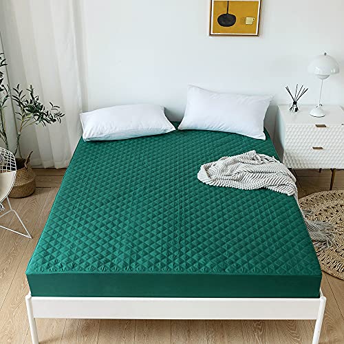 Coprimaterasso trapuntato, impermeabile, per letto matrimoniale, in microfibra, trapuntato, 35 cm, extra profondo, colore: verde lago, per letto matrimoniale...