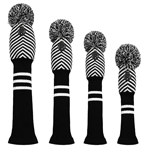Set di 4 coprimazze da golf a righe diagonali nere in maglia, adatti per legno da autista, legno da fairway, con etichette digitali rotanti