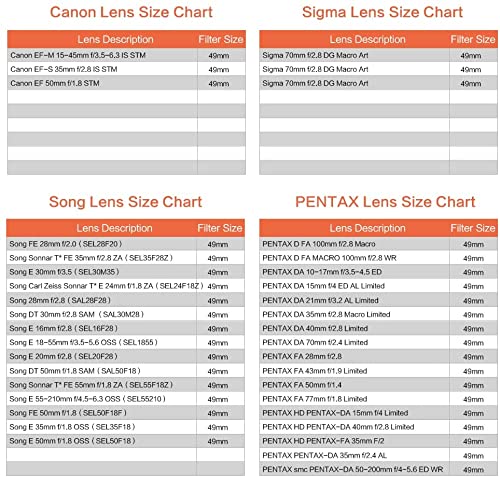 【Adatto per】 Compatibile (Figura 4).Obiettivo della fotocamera con filettatura del filtro 49mm.