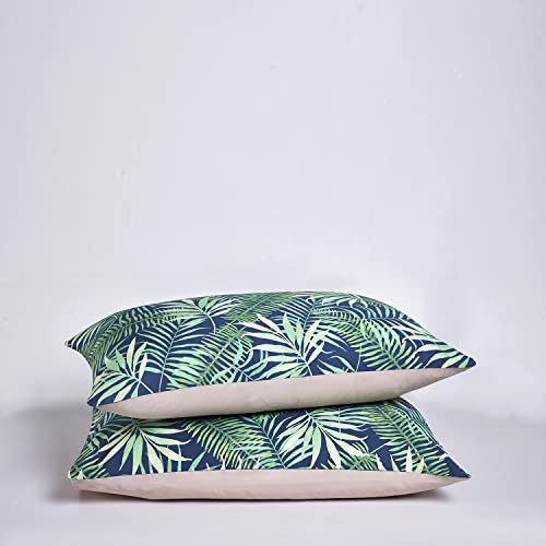Set Copripiumino Boho Letto Piazza e Mezza Motivo Foglie Tropicali, 1 x Copripiumino 200x220 cm e 2 x Federe 80x80 cm Completo Sacco Parure Letto Flores Bohémien Microfibra - Blu Marino, Verde