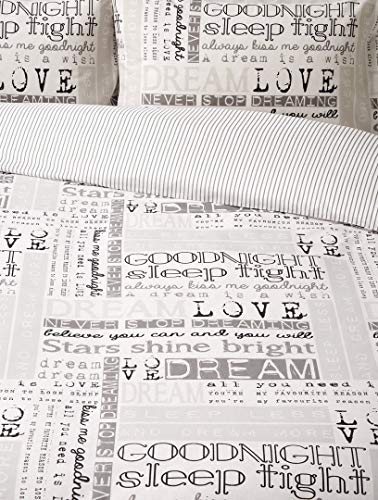 Copripiumino con citazioni Love and Dream (in lingua inglese), 3 dimensioni, 50% cotone/50% poliestere/ in cotone/poliestere, White, King size