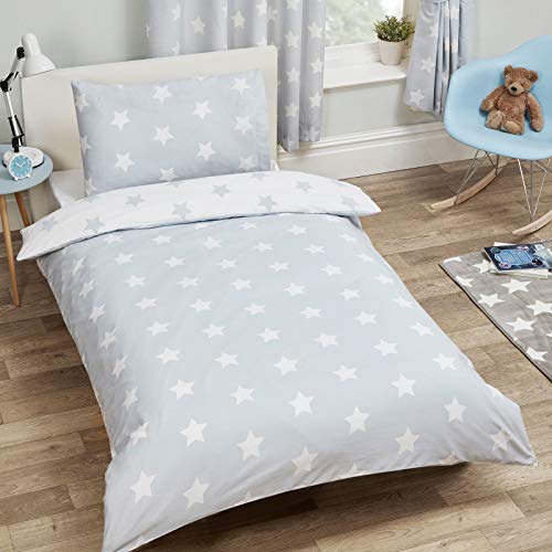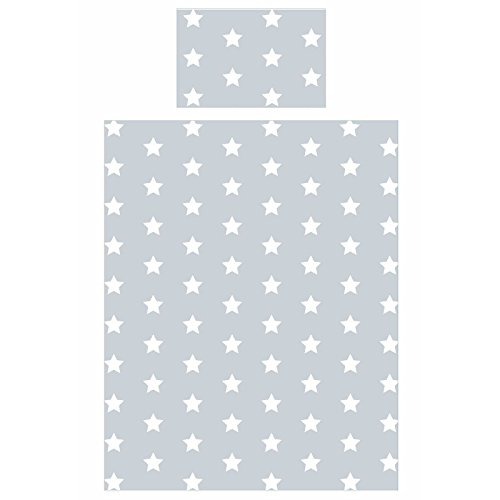 Set di copripiumino e federa a stelle, colore grigio e bianco stelle, per bambini