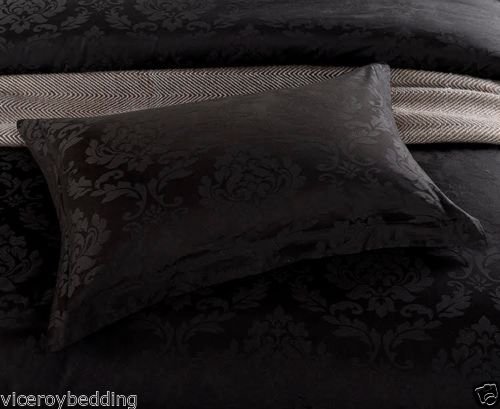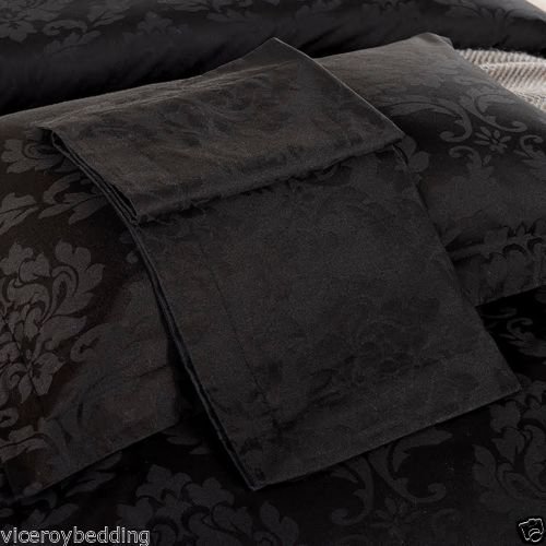 Set copripiumino Jacquard, in cotone damascato al 100%, a 500 fili, cotone egiziano, Black, Super King