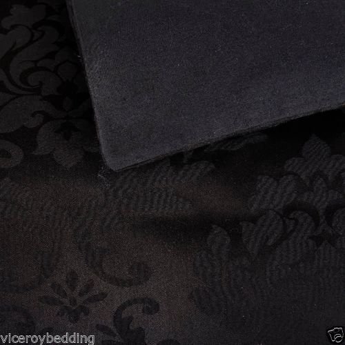 Set copripiumino Jacquard, in cotone damascato al 100%, a 500 fili, cotone egiziano, Black, King