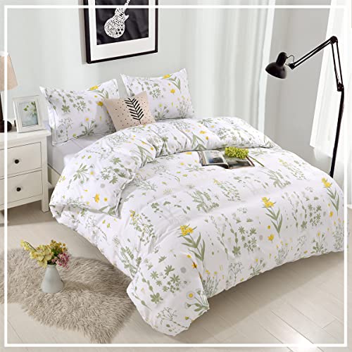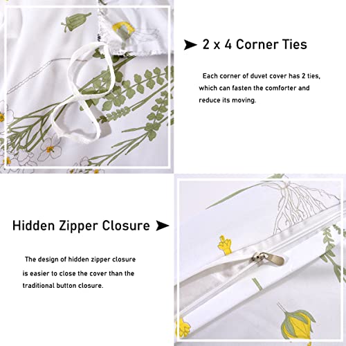 YMY Set copripiumino matrimoniale con motivo floreale botanico 200 x 200 cm, copripiumino con chiusura a cerniera, motivo floreale da giardino con 2 federe (giallo, matrimoniale)