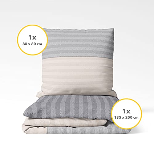 Copripiumino singolo 135x200 cm | Biancheria letto a right grigia con federa cuscino 80x80 cm 100% cotone | Set biancheria da letto singolo cotone