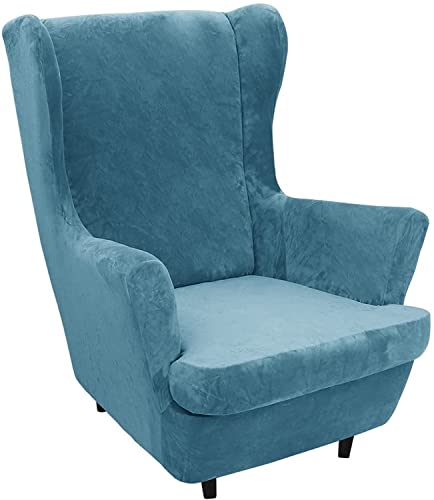 Copripoltrona con Orecchie 2-Pezzi, Copripoltrona Relax Copripoltrona 1 Posto Elasticizzato Copridivano Velluto Universale (Blu Pavone)