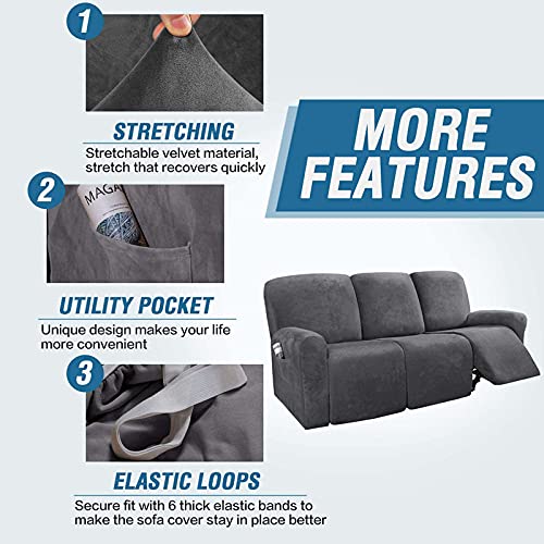 Copripoltrona Relax Elasticizzato, Morbido Velluto Fodera Per Poltrona Per1 2 3 Divano Cuscino Con Tasca Laterale Antiscivolo Lavabile Sofa Protettore Per Soggiorno-grigio-3 Posti