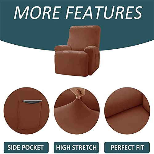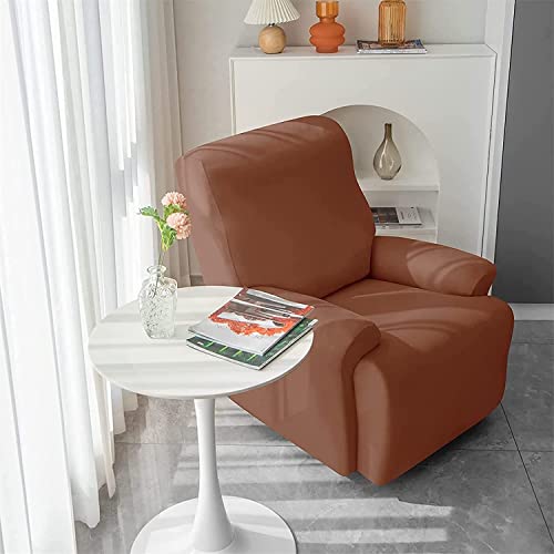 Copripoltrona Relax Elasticizzato 4 Pezzi, Moderne Stampata Fodere Poltrona Relax Reclinabile Antiscivolo, Facile da Installare e Lavare, Copertura per Poltrona Reclinabile 1 Posto ( Color: Coffee )