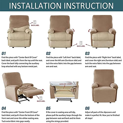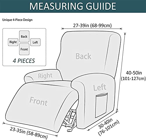 ➤ 【4 pezzi】: questo prodotto include 1 fodera per schienale, 1 fodera per sedile e 2 fodere per braccioli. Il design delle coperture divise lo rende molto più adatto per le poltrone reclinabili. Facile da installare, cucita con spessi passanti elastici per coprire i bordi inferiori, altamente consigliata per divani in pelle e tessuto.