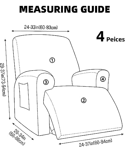 【Set da 4 pezzi Copripoltrona Relax 】Nostro copripoltrona reclinabile con braccioli includono 2 braccioli, 1 pezzo centrale per il sedile posteriore e 1 copertura posteriore centrale. Adatto per la maggior parte dei mobili reclinabili in pelle e tessuto. Si prega di misurare il divano reclinabile prima dell'acquisto.