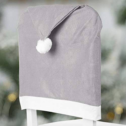 Coprisedia natalizio grigio con grazioso cappello di Babbo Natale per decorare la sala da pranzo, decorazione natalizia (4 pezzi/set) Grigio.