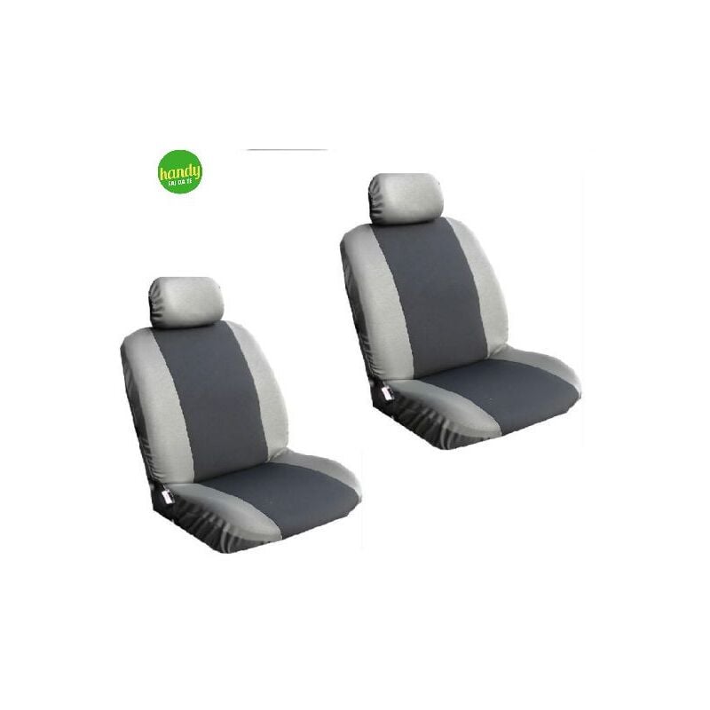 Set di 2 coprisedili in tessuto, con copri poggiatesta, con motivo sport scuro, adattabile a qualsiasi tipo di sedile, anche quelli senza airbag laterali.