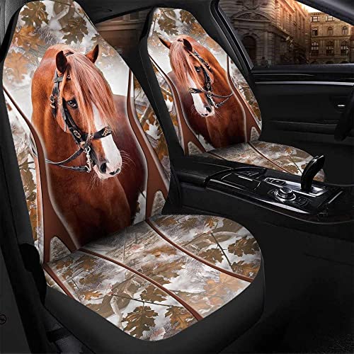 832 2 Set Coprisedili Anteriori Auto Cavallo Marrone con Motivo Coprisedili Auto Traspiranti Accessori per Auto Auto Coprisedile per SUV, Guidatore