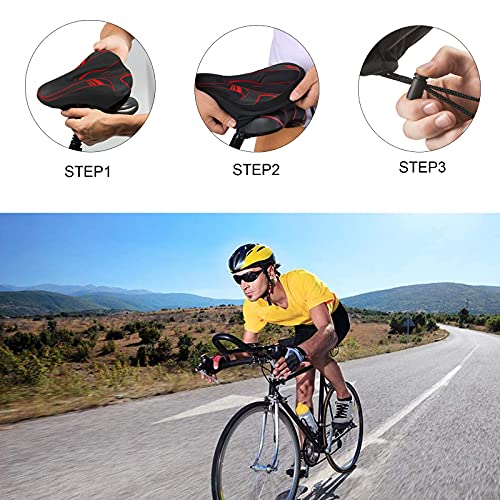 【 permeabilità più comoda 】 Il coprisella in gel per bicicletta dispone di un foro speciale e scanalatura per una migliore ventilazione e dissipazione del calore, riduce la sensazione di sudore e la pressione, offre un'esperienza di guida più confortevole.