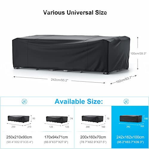 Copritavolo Esterno Impermeabile 242x162x100cm 600D Oxford, Copertura Tavolo Esterno, Anti-UV Copertura Tavoli da Giardino all'aperto del Patio per Set di Mobili da Giardino