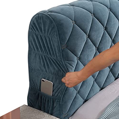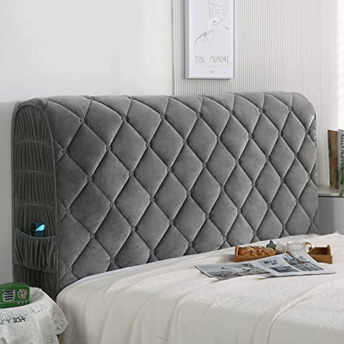 Copritestata Letto In Velluto, Fodera per testiera Letto Matrimoniale King-Singolo Coprischienale Comodino Coperture Antipolvere, Coperchio Della Testata Letto Morbida Trapuntata,Grey2-180cm/70.8in