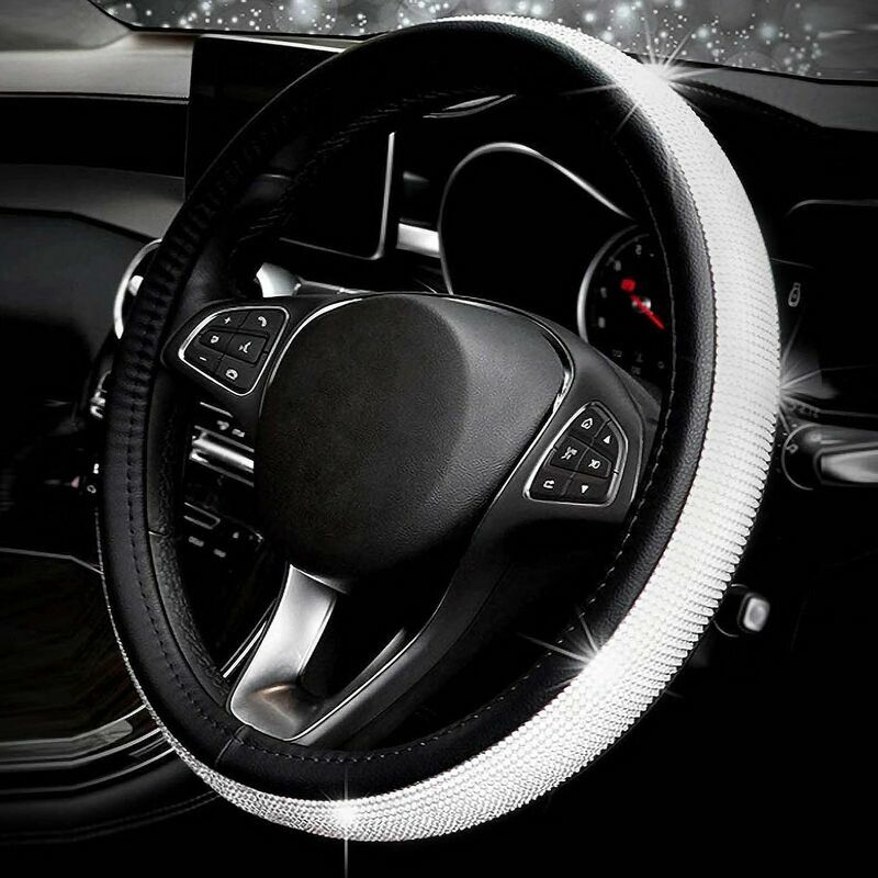 Adatto per volante diametro 38 cm. Realizzato in pregiata pelle artificiale e strass di alta qualità Coprivolante in pelle PU con strass di diamanti fatti a mano per ragazze, donne, signore. Ottimo regalo per te, la tua famiglia o un amico. Il pacchetto include: 1 coprivolante