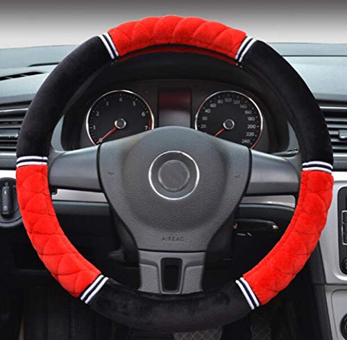 Coprivolante per Auto in Peluche Corto Invernale 3D Tenere Caldo in Pelle Antiscivolo Diametro 38 cm Peluche (Rosso)