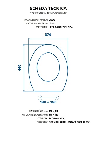 Adattabilità ed estetica moderna rende questo sedile la soluzione ideale da installare sulla ceramica. Forma: Ovale con fondo squadrato - Lunghezza (mm): 440 - Larghezza (mm) 370 - Interasse (mm): 140 ÷ 180