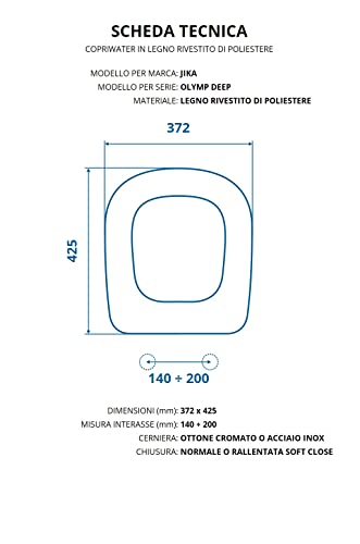 Copriwater Dedicato per JIKA OLYMP DEEP Legno POLIESTERE Pregiato Cerniera Inox - Colore: Bianco - Chiusura: Normale