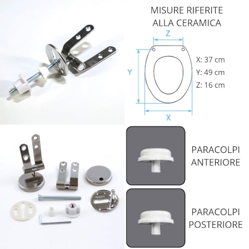 Copriwater Made in Italy dedicato per modello Absolute Classic Ideal Standard composto da sedile, coprisedile, cerniere, paracolpi e istruzioni
