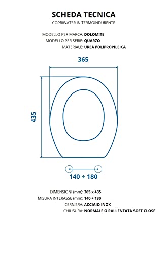 Copriwater per DOLOMITE QUARZO AVVOLGENTE TERMOINDURENTE BIANCO cerniera inox normale o rallentata soft close