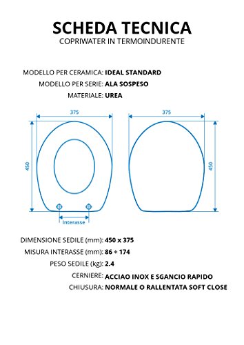 Copriwater per IDEAL STANDARD ALA SOSPESO TERMOINDURENTE BIANCO cerniera inox normale o rallentata soft close