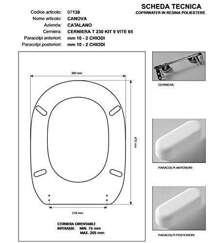 Copriwater in Legno Rivestito di Poliestere per Catalano CANOVA BIANCO Cromo-Sedile-Asse Wc Cerniera Rallentata Soft Close