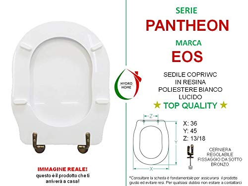 Copriwater Pantheon Eos compatibile legno rivestito in resina poliestere bianco cerniere bronzo