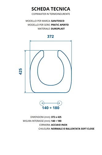 Copriwater per SANITOSCO PRATIC APERTO TERMOINDURENTE BIANCO cerniera inox normale o rallentata soft close