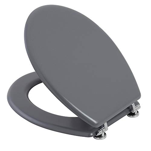 Copriwater Universale Grigio Finitura Opaco Soft-Touch in Legno MDF Completo di Ciambella e Cerniere