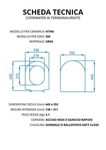 Copriwater per VITRA S50 TERMOINDURENTE BIANCO cerniera inox normale o rallentata soft close