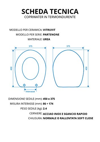 Copriwater per VITRUVIT PARTENONE TERMOINDURENTE BIANCO cerniera inox normale o rallentata soft close