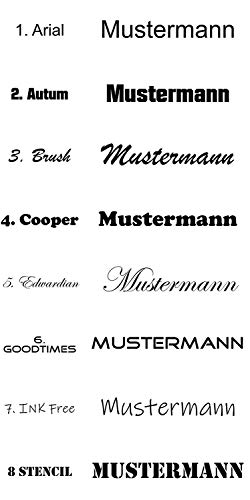 Incisione della plastica con un aspetto metallico spazzolato, durevole ed estremamente resistente alle intemperie. L'adesivo sul retro della targa dati - etichette adesive è destinato ad essere applicato sulla rispettiva superficie. Ma può essere utilizzato anche in altri settori, come i cartellini identificativi per asili o scuole materne, dispositivi elettronici e molto altro ancora.